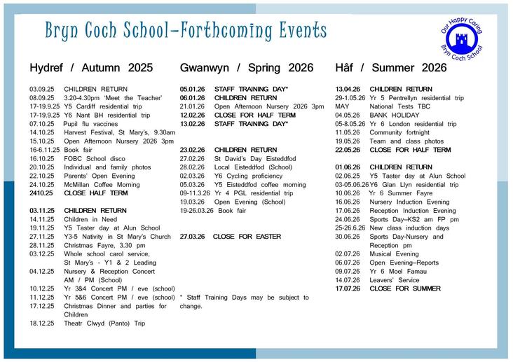 • Last Day of Half Term